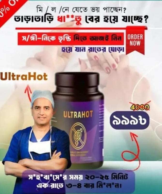 আল্টা হট একটি মালাইশিয়ান পণ্য যা আমরাই বাংলাদেশের নিয়ে এসেছি। এটার প্রধান কাজ হচ্ছে ইতালি উন্নত মানের এই আল্টা হট লিঙ্গকে লম্বা ও মোটা সহ স্থায়ীভাবে সহবাসের টাইম বৃদ্ধি করে।ভিতর থেকে শুক্রানূ তৈরী করা। আপনার লিঙ্গ 2/3 সেন্টিমিটার বড় করুন এবং একজন সত্যিকারের পুরুষের মতো অনুভব করুন!আপনার উত্থানকে শক্তিশালী এবং দীর্ঘায়িত করতে পারবেন আপনার লিঙ্গ লম্বা এবং মোটা করতে পারবেন আপনি আপনার যৌন সম্পর্কের মান উন্নত করবে পারবেন আপনি বিছানায় আপনার শক্তি বৃদ্ধি করবে Ultrahot ক্যাপসুল পুরুষের শক্তি এবং পুরুষত্ব দ্রুত বৃদ্ধি করে। ছোট পেলভিসে রক্ত সঞ্চালন এবং পুরুষ যৌন হরমোন সংশ্লেষণ দ্রুত বৃদ্ধি করে। Ultrahot বিশেষভাবে নির্বাচিত উপাদান দিয়ে তৈরি যা লিঙ্গের অভ্যন্তরে কর্পাস ক্যাভারনোসামের বৃদ্ধি ঘটায়, যা স্বাভাবিকভাবে এবং নিরাপদে এর আকার বৃদ্ধি করে।